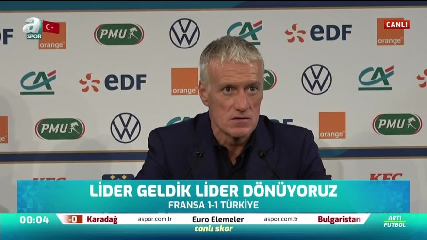 Didier Deschamps, "Kazanmak için yapılması gereken bazı şeyleri yapamadık. Daha etkili olabilirdik. Bir iki fırsatımız oldu. Bazen duran toplarda bizim aleyhimize tehlikeli durumlar oluştu. Türkiye'nin kalecisi çok iyiydi. Bazen böyle durumlar olabilir. Genel olarak yaptıklarımızdan memnunum. Türkiye'deki kadar dengesiz maç olmadı. İstediğimiz sonucu aldığımızı söyleyemem. İki maç kaldı, aynı puana sahibiz. Hedefimiz bundan sonraki Moldova maçında gerekeni yapmak" dedi.