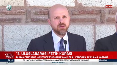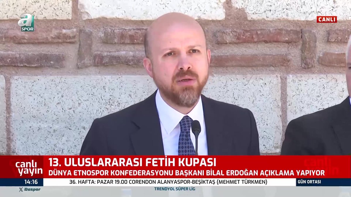 Dünya Etnospor Konfederasyonu Başkanı Bilal Erdoğan, 13. Uluslararası Fetih Kupası Tanıtım Toplantısı'nda açıklamalarda bulundu. İşte Bilal Erdoğan'ın ifadelerinden öne çıkanlar...