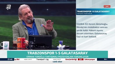 Trendyol Süper Lig'in 21. haftasında Galatasaray deplasmanda Trabzonspor'u 5-1 mağlup etti. A Spor yorumcusu Erman Toroğlu, karşılaşmayı değerlendirdi. Toroğlu, "53. dakikada Mendy'nin Kerem’e yaptığı müdahale, net sarı kart" dedi.