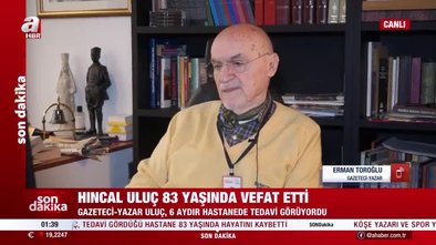 Duayen gazeteci Hıncal Uluç, 83 yaşında hayatını kaybetti. A Spor yorumcusu Erman Toroğlu, usta gazeteci için, "Çok üzüldüm. Çok iyi arkadaşımdı. Çok insan onunla büyüdü." ifadelerini kullandı.