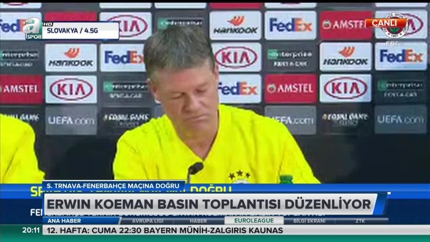 Fenerbahçe Teknik Direktörü Erwin Koeman, UEFA Avrupa Ligi'nde karşılaşacakları Spartak Trnava maçı öncesinde basın toplantısı düzenlerken Hollandalı teknik adamın basın toplantısı sadece 3 dakika sürdü.