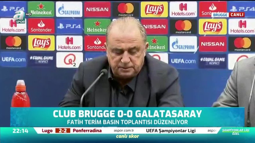 Galatasaray'ın deplasmanda Club Brugge ile 0-0 berabere kaldığı müsabakanın ardından sarı kırmızılı takımın teknik direktörü Fatih Terim, basın mensuplarına açıklamalarda bulundu.
