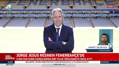 Jorge Jesus, Fenerbahçe'ye resmi imzayı attı. Sarı lacivertli ekip, Portekizli çalıştırıcı ile anlaşma sağlandığını KAP'a bildirildi. Fenerbahçe, Jesus'un sözleşme detaylarını açıkladı. Jesus'un sözleşmesi 1 yıllık olacak. Kupa Avcısı bu sürede 3 milyon euro kazanacak. Detayları A Spor muhabiri Ahmet Selim Kul açıkladı. | Fenerbahçe haberleri (FB spor haberi)