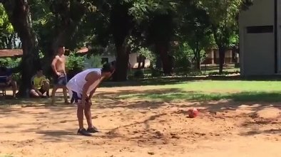 Cezaevindeki arkadaşlarıyla birlikte sık sık maç yaparak vakit geçiren eski yıldız futbolcu, bu kez ayak tenisi oynarken görüntülendi.