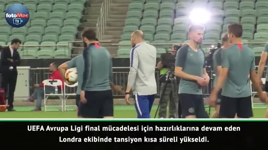 Azerbaycan'ın başkenti Bakü'de bugün oynanacak UEFA Avrupa Ligi finalinde bir diğer İngiliz ekibi Arsenal ile karşı karşıya gelecek Chelsea'nin teknik direktörü Maurizio Sarri dün akşamki idmanda çok sinirlendi. Maç öncesi yapılan son antrenmanda David Luiz ve Gonzalo Higuain arasında gerginlik çıktı. David Luiz'e sinirlenen Sarri, idmanı öfkeli tavırlarla terk etti.