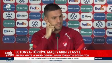 2022 Dünya Kupası Elemeleri G Grubu'ndaki 8. maçında A Milli Futbol Takımı'mız deplasmanda Letonya ile kozlarını paylaşacak. Karşılaşma öncesi milli futbolcu Merih Demiral ve teknik direktör Stefan Kuntz basın toplantısı düzenledi. Demiral, "Hamit abi ve hocamız bizimle çok iyi ilgileniyor ve bu süreçten çıkacağımızı düşünüyorum. Benim Dünya Kupası'na katılma inancım devam ediyor. İnşallah burada kazanacağız ve bu kötü durumdan çıkacağız." ifadelerini kullandı.