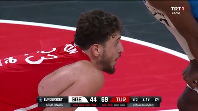 EuroBasket 2025 yarı final maçında Yunanistan ile karşı karşıya gelen A Milli Basketbol Takımı'mızda yıldız oyuncu Alperen Şengün, salonda çalan '12 Dev Adam' marşına eşlik etti. İşte o anlar...