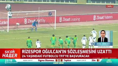 Çaykur Rizespor, sezon sonunda sözleşmesi biten ve adı Galatasaray ile anılan Oğulcan Çağlayan'ın kontratındaki opsiyonu kullanarak oyuncunun sözleşmesini 1 yıl uzattı. Oğulcan Çağlayan, TFF'ye başvuracak. Spor Hukukçusu Anıl Dinçer, Son Sayfa programında bağlanarak detayları aktardı.