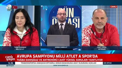 Son dakika spor haberleri... Avrupa Salon Atletizm Şampiyonası'nda kadınlar üç adım atlamada altın madalya kazanan milli sporcu Tuğba Danışmaz ve antrenörü Cahit Yüksel, A Spor'un canlı yayınına katılarak duygularını paylaştı.