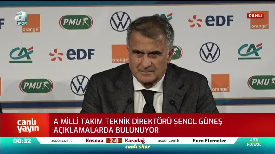 EURO 2020 Elemeleri H Grubu 8'inci maçında A Milli Takım, deplasmanda Fransa ile 1-1 berabere kaldı ve liderliğini sürdürdü. Karşılaşma sonrası düzenlenen basın toplantısında açıklamalarda bulunan A Milli Takım Teknik Direktörü Şenol Güneş, "Zeki sakatlandı ve sağ bekte Nazım vardı ama bu maç için Kaan'ı tercih ettik ve çok da iyi oynadı. Genel olarak 1 puan bizim için sevindirici bir olay. Allah'ıma şükürler olsun. Bütün oyuncularımı tebrik ediyorum" diye konuştu.