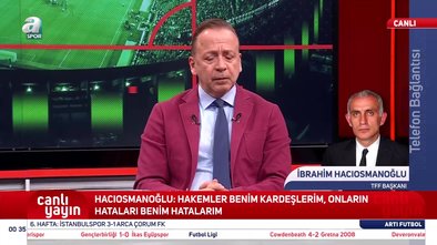 TFF Başkanı İbrahim Hacıosmanoğlu, Trabzonspor - Gaziantep FK maçının ardından A Spor'a özel açıklamalarda bulundu. Başkan Hacıosmanoğlu, karşılaşmanın hakemi Arda Kardeşler'le ilgili olarak "40 yıllık spor tecrübemde yaşadığım tüm pozisyonlarda, ben bu akşam gibi bir hareket görmedim. Hakemler benim kardeşlerim, onların hataları benim hatalarım ama bu akşam yaşanan bir hata değil! Böyle bir olay Türk futbolunda yaşandığı için futbolseverlerden özür diliyorum. Pazartesi günü Arda Kardeşler ile konuşacağım, gereğini yapacağım." dedi. İşte detaylar...