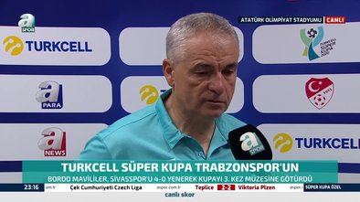 Sivasspor Teknik Direktörü Rıza Çalımbay, Trabzonspor'a 4-0 mağlup oldukları Süper Kupa maçı sonrası açıklamalarda bulundu. Yedikleri gollerde büyük hatalar yaptıklarını belirten Çalımbay, "Gol yiyince müdahale etmeye çalıştık, olmadı. Yemememiz gereken goller yedik. Bana göre herkese bir ders bu maç. Bu maçtan çok dersler çıkaracağız" dedi.
