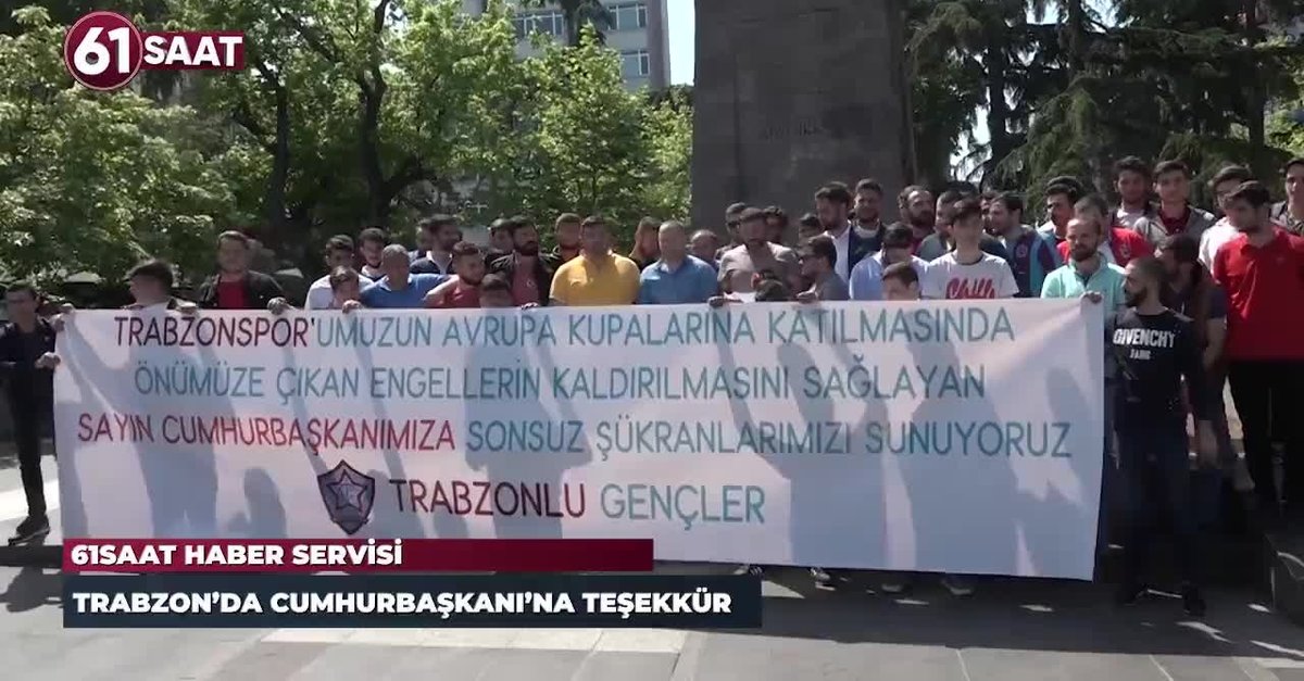 Trabzon Meydan Parkı'nda toplanan Trabzonlu Gençler, açtıkları pankart ile Trabzonspor'un UEFA ile yaşadığı süreçte bordo-mavili kulübe destek olan Cumhurbaşkanı Recep Tayyip Erdoğan'a teşekkür etti. Grup adına açıklama metnini okuyan Adem Sögüt, "Trabzonspor, 2016 yılılında UEFA'nın Fair Play anlaşması kurallarını ihlal ettiği gerekçesiyle şartlı olarak disiplin yaptırımı önerisiyle UEFA kontrol organı (CFCB) tarafından şartlı olarak disiplin yaptırımı önerisiyle CFCB yargı dairesine sevk edilmiş ve Avrupa kupalarından men cezasıyla karşı karşıya kalmıştır. Trabzonspor gibi 52 yıllık geçmişe sahip bir futbol kulübünün Avrupa kupalarına katılamaması hem Trabzonlu hemşehrilerimizi derinden üzecekti hem de Türk futbolu açısından büyük bir kayıp olacaktı. Trabzonspor'un Avrupa kupaları önündeki engel Cumhurbaşkanımız Recep Tayyip Erdoğan'ın devreye girmesi ile artık aşılmıştır. Trabzonlu Gençler gurubu olarak Cumhurbaşkanımız Recep Tayyip Erdoğan'a, Trabzon'umuza ve Trabzonspor'umuza verdiği değer için şükranlarımızı sunuyor, Avrupa kupalarında ülkemizi temsil edecek olan Trabzonspor'umuza başarılar diliyoruz" ifadelerini kullandı.