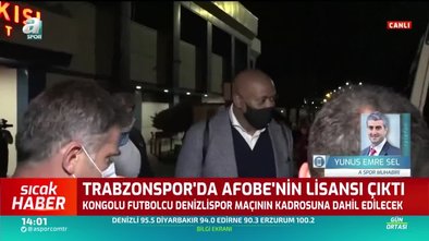 Trabzonspor'da Benik Afobe'nin lisansı çıktı. Kongolu futbolcu, ligdeki Yukatel Denizlispor maçının kadrosuna dahil edilecek. Detayları A Spor muhabiri Yunus Emre Sel aktardı.