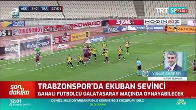 Trabzonspor'da sakatlığı bulunan Caleb Ekuban'ın Galatasaray maçında oynayabileceği bildirildi. Bordo-mavililerdeki son gelişmeleri A Spor muhabiri Yunus Emre Sel aktardı. Sel, "Ekuban ve Abdulkadir Parmak oynayabilecek durumda, Nwakaeme'nin durumu ise hafta içinde yapılacak antrenmanlar sonrası netlik kazanacak" ifadelerini kullandı.