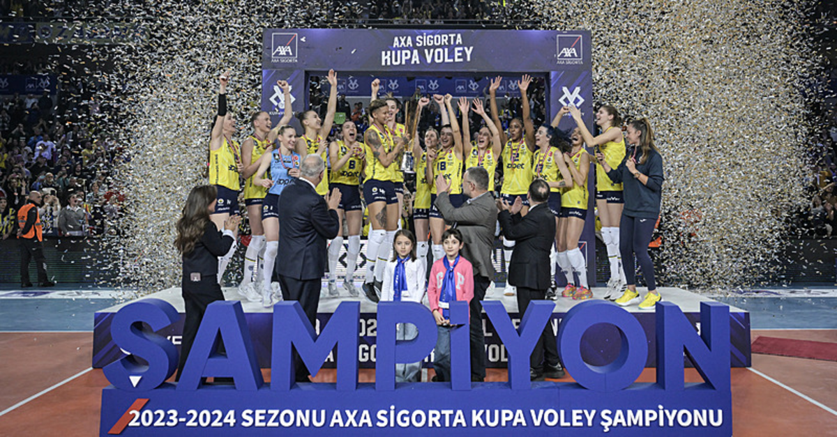 Kupa sevincini yaşayan Fenerbahçeli voleybolcular daha sonra takım halinde şampiyonluk fotoğrafı çektirdi.