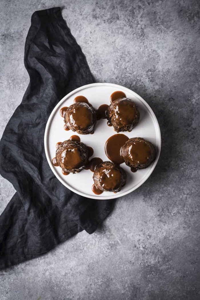 - Hazırladığınız ve içini krema ile doldurduğunuz profiterol toplarının üzerine dilediğiniz kadar çikolata sosu dökebilirsiniz.
